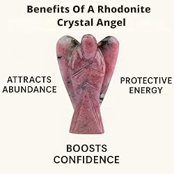 ANAYA AGATE Rhodonite Angel Statue 2" Beautiful Gemstone Guardian Angel Natural Crystal Angel Hand-Carved Angel Charms for Protection, Stress Reduction, Positive Energy Crystal Figurines Décor