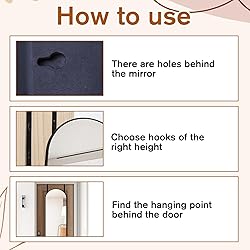 Complete Installation Kit: Our over the door mirror hanger set includes 2 black metal brackets, 2 iron filings, and 8 screws for secure mounting. Designed specifically for mirrors with pre-drilled holes on the back, this comprehensive package ensures you have everything needed for proper installation.It suitable for most standard mirrors while the protective lining prevents door damage during use Adjustable Height Design: Featuring multiple mounting holes, this adjustable door mirror hanger allows precise height customization to match your preferences. The five-hole configuration provides flexibility in positioning, enabling perfect alignment for various mirror sizes without requiring additional tools. This thoughtful design accommodates different user heights and door configurations Durable Construction: Crafted from high-quality iron, these door mirror hanger can support up to 22 lbs, ensuring long-lasting durability. The robust metal design resists deformation, while the slim profile allows doors to close smoothly. The white finish adds a touch of elegance to any room Space-Saving Solution: Maximize your room's functionality with this discreet over-the-door mirror hook that organizes your space efficiently. The clever behind-the-door placement eliminates floor space usage while keeping mirrors accessible. This versatile organizer works perfectly on various doors including bedroom, bathroom, and entry doors, helping maintain clutter-free environments without compromising on style or convenience Versatile Application: Beyond mirror hanging, these hanging mirror over door accommodate various items including coats, hats, bags, and decorative pieces. The heavy-duty metal construction ensures reliable performance for multiple organizational needs around your home