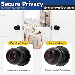 RAFECIEE Privacy Door Knob Keyless Door Knobs Interior with Lock Bathroom Door Knob with Lock Matte Black Doorknob