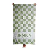 FrameStory Personalized Beach Towel, Checkered Pattern Design, Custom Name Text, Microfiber Front with Cotton Back, Super Absorbent, Multiple Colors Available