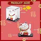 OFFAXE Lucky Cat Waving Arm 4PCS Waving Cat 2" Small Solar Powered Maneki Neko Lucky Beckoning Feng Shui Fortune Wealth Chinese Cat with Dust Cover for Home Office Car Stores