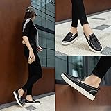 【COMFORT & DURABILITY】 Well crafted from sturdy but supple real leather that’ll soften up to fit your feet like a glove. The leather upper is sewn - not just glued - to the sole with white waxed thread for extra durability and built to last. The non slip rubber soles are grooved to keep safe and secure with every step. The removable lightweight EVA cushioned insole are molded with high arch support and deep heel cup to provide stability and flexibility. Make all-day wear feel like a dream. 【STYLISH IN A CLASSIC WAY】 The traditional penny strap design gives them a classic and simple look, yet stylish enough for dressy and casual. Stitching is simple, but durable, done in a beige waxed thread which is a smart contrast to the muted gloss of the leather. A nice loafer option as a chic dress shoe, cute everyday shoe, comfortable walking shoe. Classic styling is always in trend. Perfect for daily activities - shopping, driving, teaching, traveling and casual use in and outdoors. 【EASY ON AND OFF】 Extra cushiony padding at the top of the heel area for easy to slip on and off, delivers pillowy feel and no rubbing your heels. The rounded Moc-toe box provides plenty of wiggle room for happy toes yet not looks too boxy. Soft lining cushions your bare foot gently and makes a truly enjoyable shoe-wearing experience. No pain, pinching, blister or discomfort! Run true to size for most standard US size and offer immediate comfort with no break-in period needed. Just unbox and go! 【A JOY - CAN’T STOP WEARING THEM】 It's a perfect blend of sneaker and loafer - sleek and versatile. Casual like a sneaker but with a dressier look to up-class any outfit! Comfort is key to anyone who walks all day and these are bound to become their go-to pairs. Ideal for daily wear, from office to evening, sporty to casually dressy, running errands, or a simple dress down day. Perfect for moms, office ladies, waitresses, nurses and teachers. They are a classic fashion staple for your wardrobe. 【Very Nice Loafer Option!】 Are you the kind of girl that truly hates flats but love how professional these make you look? Are you the kind of girl that for a job where you’ re driving long miles and taking your shoes off and on? Are you the kind of girl that looking for a nice dress shoe for the office but it’s not easy when you have flat feet? Are you the kind of girl that hates wearing heels, but you want something that is a little more than a ballet flat? If so….These are it!
