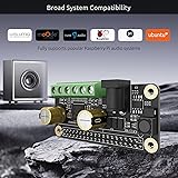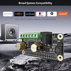 【High-Efficiency Audio Amplifier】This Raspberry Pi Ampilifier Audio Hat on-board MERUSTM MA12070P which is a super-efficient audio power amplifier based on proprietary multi-level switching technology. It is a 2x80W Peak Output Class-D digital-audio power amplifier for driving stereo bridge-tied speakers. Offers low distortion and acoustically accurateaudio reproduction. 【Easy Installation】Size fits perfectly onto a Raspberry Pi Zero(W) Zero2(W) series, Compatible with all series Raspberry Pis through the 40-pin connector. With simple configuration, you can achieve excellent sound quality. 【HiFi Performance】Supports audio sample rates from 44.1kHz to 192kHz with up to 92% power efficiency and low EMI emissions. Ideal for use in soundbars, multi-room audio setups, and home theater systems. 【System Compatibility】Fully supports popular Raspberry Pi audio systems, including LibreELEC, OSMC, Raspbian, RuneAudio, Volumio, Moode, and Ubuntu. Seamlessly plays music from USB drives, hard disks, or over your home network. 【Built-in Power Protection】Equipped with a power protection mechanism to prevent damage from high-energy voltage surges. Please avoid hot plugging the power supply, as this may still harm the amplifier components.