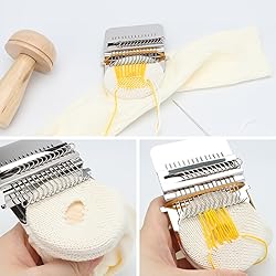 - Our repair tool kit includes a variety of sewing accessories, eliminating the need for additional tools to meet most household sewing needs. It's the ideal choice for mending socks, towels, scarves, bags, hats, sweaters, gloves, carpets, coats, and more. It can also be used to create unique patterns and exquisite handicrafts Mushroom Darning Kit: Darning mushroom:1pcs 14-Hook Small Knitting Machine: 1 set Weaving Comb:1pcs Elastic cord:1pcs Tapestry needles bent:2pcs Large eye needle:9pcs Darning threads:24pcs Specifications: Darning mushroom: about 4.13 x 2.36 inches Loom: about 2.55 inches/Hook: 3.15 inches x 2.76 inches Weaving Comb:3.54 inchesx3.34 inches Needles: 3 sizes, about 2.71 inches, 2.28 inches, 2.05 inches Tapestry needles bent: 2.71 inches Darning threads: about 8.75 yd
