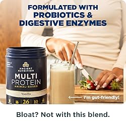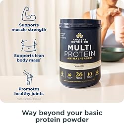 Ancient Nutrition Multi Protein Animal Based Powder, 26g Protein, Grass Fed Whey, Bone Broth, Collagen Peptides, Colostrum & Probiotics, Supports Joint & Gut Health, Vanilla, 15 Servings