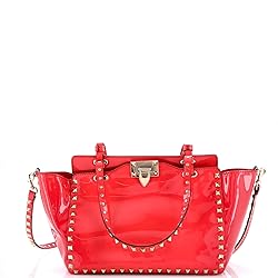 Valentino Garavani, Pre-Loved Rockstud Tote Soft Patent Medium, Red