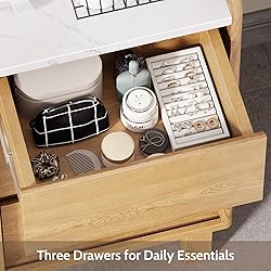 One Cabinet, Endless Possibilities: Why buy three separate pieces? This versatile Small Storage Cabinet effortlessly transitions from a sleek bathroom storage cabinet, to a chic bedside table, or a stylish kitchen pantry cabinet. Its modern design fits anywhere you need smart storage. See-Through Style Meets Marble Luxury: Elevate your space instantly. The elegant ripple-effect acrylic doors offer a preview of your items, while the realistic marble-patterned top adds a touch of sophistication. It’s a storage cabinet with doors that looks as amazing as it functions. Customizable, Spacious & Super Organized: Conquer clutter with premium organization. Inside, find three smooth drawers and an adjustable shelf to perfectly fit everything from toiletries to tableware. This spacious kitchen storage cabinet or vanity keeps your home tidy and efficient. Built for Real Life: Waterproof & Worry-Free: Spills and steam are no match for this cabinet. Crafted from waterproof, scratch-resistant MDF, it’s the durable champion for your bathroom, kitchen, or anywhere life happens. Plus, moisture-proof floor spikes provide an extra layer of protection. Easy Assembly & Anchored for Safety: We’ve done the hard part for you. Get set up fast with our clear video guide and instructions (tools included!). For ultimate peace of mind, it comes with a robust anti-tip anchoring system. Your beautiful, stable new cabinet is just a few simple steps away.