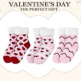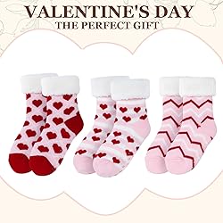 Package Includes: you will receive 3 pairs of sherpa slipper socks in three colors per package; These Calf socks feature a double-layer fabric and fleece lining; They can be applied as indoor socks, anti-slip socks, sleep socks, or as thermal socks Material: these thick crew socks are made of polyester fabric and lined with thick lamb hair; Its patterns exude a unique pink heart style; Wearing these Sherpa socks brings soft skin-friendly feeling, and has excellent breathability and durability Sizes 5-13: these valentine socks fit women's shoe sizes 5-13 and offer excellent stretch; Their elastic construction conforms to the foot without sacrificing comfort, providing a snug fit and making them ideal for everyday wear Non-slip Socks: each pair of valentine day socks adopts silicone non-slip soles to provide grip and prevent slipping on the wet floor; The cute star and moon-shaped non-slip bottom design allows you to keep your feet stable in various occasions Great Gift Idea: sherpa slipper socks are essential items in cold winter; These socks are suitable for daily home wear, also an ideal gift for mothers, wives, daughters; It is suitable for giving them on birthdays, Christmas and holidays, bringing warmth in the cold winter