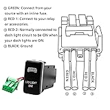 High Grade Material: The housing of this car push button switch is made of ABS material, which is sturdy and wear-resistant, can effectively resist wear and tear in daily use, has strong stability, and can maintain good performance in various use situations without being easily damaged. The wire is made of copper material, which has excellent conductivity and smoother current transmission, ensuring stable power supply for the switch during use. Vast Compatibility: This button switch measures 1.53 x 0.81", the length of the wire is 7.87", rated at 0.5A 12V. It is compatible with F-J Cruiser 2007-2015, Fortuner 2005-2014, Hilux 2005-2014, T-acoma 2005-2011, T-acoma 2012-2015 (Left Side ONLY), High-lander 2001-2007, Tun-dra 2005-2007 (Center Console if equipped), 4-Runner 2003-2009, P-rado 120 Series 2003-2009, L-and Cruiser 100 Series 1998-2007, L-and Cruiser 75, 76, 78 & 79 series. Smooth Installation: Installation of this car push button switch is simple and convenient. Connect the black wire to the power supply negative terminal, the red wire to the power supply positive terminal, the green wire to the load output positive terminal, and the blue wire to the input positive terminal. Securely connect each wire according to the correct wiring diagram, ensuring good contact at every connection point. Practical Features: This push button switch features a backlit panel that illuminates automatically when switch is turned on, allowing users to quickly locate the switch in low-light conditions. The symbol light is positioned above the switch, while the letter light is below, enabling users to intuitively understand the switch's current operational status and clearly determine whether the light is on or off, enhancing user convenience. Clear Pattern: This SPST on-off push switch replaces worn-out switches, restoring their pristine appearance. Its surface features etched patterns that are clear and distinct, allowing users to easily identify the switch's functional labels. Even after frequent touching or minor friction during daily use, the patterns remain clear and durable, ensuring long-lasting clarity.