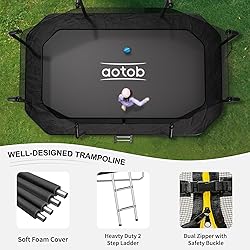 Perfect for Gymnastics Practice: Comes in 2 boxs. AOTOB Rectangle Trampoline provides ample space for kids to practice their gymnastics skills. Its exceptional elasticity and durable construction make it a great tool for beginners and advanced gymnasts alike. Safe and Secure: Our Trampoline for kids is designed to prioritize safety. No-gap enclosure design with soft foam around the poles minimizes collisions and prevents feet from stepping into the springs. The enclosure net with a zipper ensures safety while jumping. Sturdy and Durable: The heavy-duty powder-coated steel frame and four supportive legs make the Rectangle Trampoline extremely sturdy and durable. It can withstand all weather conditions, providing fun and entertainment for years to come. Easy to Assemble: The user-friendly instructions manual that comes with the Rectangle Trampoline makes assembly easy and hassle-free. If you need further assistance, our Bilt app offers 3D, step-by-step instructions for speedy assembly. After-Sales Support: We offer a 5-year support of jumping mats, frame & spring as well as 3-year support of the enclosure net and pole caps. In case anything is found defective, we provide an immediate replacement at zero cost. Our customer support team is always there to address your concerns.