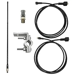 - This combo is compatible with various truck mirror brackets & CB Models of Radioddity Luiton Fits Cobra Radioddity Fits Uniden Radioddity Fits Galaxy Radioddity Fits President Radioddity Fits RoadKing Radioddity Fits Midland Radioddity Fits AnyTone Radioddity This combo includes: 1 Pc - 2 ft Fiberglass 500 Watt CB Radio Antenna Black 1 Pc - Antenna Mounting Connector 1 Pc - Double Groove Aluminum CB Antenna / LED Light Mount 1 Pc - 6 ft RF Coax Cable UHF Male PL259 to Mini UHF Male PL259 1 Pc - 6 ft RF Coax Cable UHF Male PL259 to Mini UHF Female SO239 The design of MINI UHF connection gives an easy routing of 1/2 inch diameter coax and no need to re-solder it on once routed OR drill a larger hole when going through metal DOT Approved.
