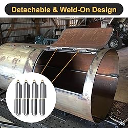 【6-PACK VALUE】 Get everything you need for your project with six 4-inch heavy-duty bullet hinges, providing ample quantity to securely fasten lids and doors. 【HEAVY-DUTY CONSTRUCTION】 Forged from robust carbon steel with a durable gray finish, these hinges are built to resist wear and withstand harsh outdoor conditions for long-lasting use. 【DETACHABLE & WELD-ON DESIGN】 Features a weldable barrel on one end for a permanent mount and a cavity plate on the other for easy disassembly, simplifying installation and maintenance. 【SMOOTH 180° ROTATION】 Ensures effortless operation, allowing doors, lids, and gates to swing open and closed smoothly with a 180 degree range of motion. 【VERSATILE APPLICATION】 The ideal hinge solution for a wide range of projects including BBQ smokers and grill lids, metal swing doors, driveway gates, and trailer ramps.