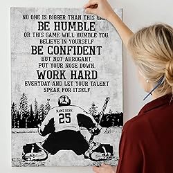 Personalized Hockey Poster & Canvas, Be Humble Be Confident Wall Art, Custom Name Number Home Decor For Boy, Son, Kid From Mom. Dad, 24"X36"