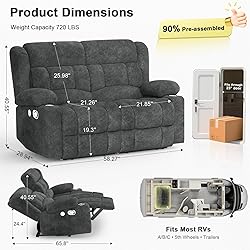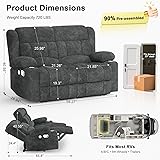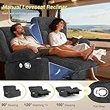 MOSGAT RV Loveseat Recliner Sofa, Reclining Loveseat Home Theater Seating with USB Ports, Cup Holders, Insert Pockets, Wall Hugger RV Recliners for Movie Room, Recline Movie Seats Gaming Sofa, Gray