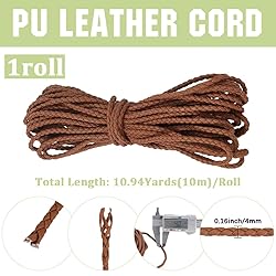 10m Braided Leather Cords: Comes with 1 roll of round braided leather strings in saddle brown, about 10m long, 4mm in diameter, length enough to meet your DIY crafts need Exquisite Design: Round faux leather strips braided with 4 strands of pu leather cord, with neat weaving, soft and flexible, comfortable to touch, not easy to break and fade, strong and lightweight Easy to Use: You can cut the bolo tie strings to any length you want according to your needs. This braided leather rope is easy to bend, knot, wrap and weave for limitless creative possibilities DIY Crafts: You can make your own necklaces, bracelets directly from these leather cords, or add additional jewellery parts such as charms, crystals, beads and other embellishments that your own. Use your imagination to make handmade bracelets, choker necklaces, bolo tie, cowboy hat chin strap, hair braids, eye glasses lanyards/holder straps, anklets, pendants, bag charm, keychain, etc Wide Applications: The PU braided cord is great for viarious kinds of jewelry making and other DIY crafting, use it to make an unique gift for your friends and family for birthdays, graduations, New Year, Mother's Day, Father's Day, Easter, Halloween, Thanksgiving, Christmas, wedding, anniversary, engagement, and any other special occasion or celebration