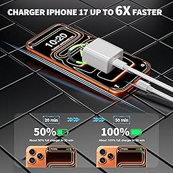 【45W Fast Charger for iPhone 17/16 Pro Max】This 45w usb-c charger adopts PD 3.0 technology and an intelligent chip, with a maximum output power of 45W. This apple super fast charger type c can charge your iPhone 17/16 from 0% to 70% in just 30 minutes-6 times faster than other chargers-helping you work more efficiently. 【Extra-Long 10FT Charging Cable for iPhone 17/16】This 2-pack 45W iPhone 16 charger 10 ft set includes 2 extra-long 10FT USB-C to USB-C fast charging cables. You can use them anywhere, such as cafes, sofas, or libraries, without worrying about length limitations. Moreover,long iPhone charger usb c are made of durable, high-quality materials to extend service life, ensuring your money is well spent! 【Wide Compatibility】This 45W apple iPhone 16 charger 10 ft Perfectly compatible with iPhone 17 Pro Max/17 Pro/17 Air/17, iPhone 16 Pro Max/16 Pro/16e/16/16 Plus. It also works with iPhone 15/15 Plus/15 Pro/15 Pro Max, iPad Pro 11-inch (4th Gen/3rd Gen/2nd Gen/1st Gen), iPad Air (5th Gen/4th Gen), iPad Mini (6th Gen), iPad (10th Gen), as well as all other USB-C-enabled devices. 【Safe and Reliable Charger】Our fast iPhone charger is MFi-certified and built with a multi-safety protection system, which protects your devices from damage caused by short circuits, overcurrent, overheating, and overcharging.Equipped with an advanced intelligent chip, it can automatically adjust to the optimal current for your device-meeting your needs, extending the service life of your iPhone 17, and accelerating fast charging. 【What You'll Get】2 * 45W USB-C Fast Charging Blocks for iPhone 17/16 and 2 * 10FT USB-C to USB-C Fast Charging Cables.If you have any questions or concerns, please feel free to contact us.