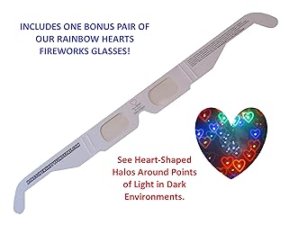 - Experience fireworks shows, holiday lights, city lights, concert and music festival lights and the moon and stars in a whole new way! Fireworks glasses create bursts of rainbow colors around points of light in darkened environments. Includes 25 Rainbow Spectrum Glasses, 25 Trippy Tie-Dye Glasses and 1 bonus pair of our Rainbow Hearts Glasses, 51 glases in all.