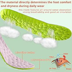 Comfortable Insoles for men and women:KARUOSHIRUI Microfiber Leather Insole-The bottom is made Insoles of PU material - for face Microfiber Leather,The combined material can be degraded in the natural environment, and the heel pad is designed to absorb impact, allowing you to stand or walk for a long time with ease. This insole can effectively reduce the pressure on your feet and legs, relieve fatigue, and let you experience the ultimate comfort experience New Technology 4D Cloud Insole:The men's 4D Cloud insole provides enhanced cushioning and support in specific areas of the foot, such as the heel and forefoot. Its unique honeycomb perforation design enhances airflow and moisture management. The Super-Transfer leather fabric is highly wicking and non-slip, ensuring your feet stay dry all day long while effectively wicking away perspiration and preventing odor. This provides lasting comfort and keeps you warm, even during intense activity Targeted Arch Support: Our ergonomically designed insoles provide targeted support for the arch of the foot. The perfect fit helps relieve discomfort caused by conditions such as plantar fasciitis, flat feet and bunions. Balances the force structure of the foot, helps correct abnormal walking patterns and relieves foot pain. By fitting perfectly and providing necessary support,They balance foot pressure and support healthy foot alignment Shock-Absorbing Stabilit: Our insoles feature advanced shock absorption technology and a U-shaped heel cup, providing excellent stability and a perfect fit. High-resilience foam and heel design work together to absorb the impact of each step, significantly reducing pressure on the feet and knees, providing continuous support and relieving foot fatigue. This stability and cushioning make every movement more comfortable and gentle Wide range of applications - convenient and fast:Easy trim to cut for adjustable sizes in various types of mens and womens footwear ranging from running shoes, work boots to casual sneakers,Suitable for people who work standing up all day, office workers, athletes, seniors, or anyone who experiences some kind of foot pain. insoles can be worn on any type of shoes, boots or slippers