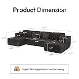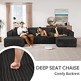 U-shaped sectional sofa: The structure of the U-shaped sectional sofa provides ample seating space, and its backrest and armrests are usually ergonomic to provide good support for the back and waist, making it less likely to get tired after sitting and lying down for a long time. Spacious and Practical: The sofa measures 131.5" x 59.45" x 25", allowing you to relax in a spacious space. The U-shaped sectional couch has a total of 4 modules, each of which can be easily moved and freely combined into different shapes. The ultra-deep seat depth design of the double concubine position is suitable for a variety of sitting and lying positions. Soft Corduroy Fabric:The corduroy is thick to the touch and has a certain elasticity, providing a soft support when sitting or lying down, making your body and mind more relaxed. It is skin-friendly and friendly to the elderly and children. High resilience padding: The interior of the cloud modular sofa is filled with high-density elastic padding to provide good support and bring a comfortable sitting feeling like a cloud. The backrest and bolster provide support for the lower back and neck, allowing you to relax and enjoy a relaxing rest. The hand-tufted button process highlights the light luxury texture and reflects the beauty of home comfort. No assembly required: Out of the box, eliminating tedious installation steps, just open the package and wait for air filling, and the sofa will automatically regain its elasticity. No tools required, the sofa can be fully stretched within 72 hours, quickly reaching optimal condition, allowing you to quickly experience a comfortable time.