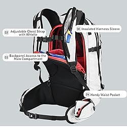 - Semsty 25L Ski and Snowboard Backpack, designed for cold-weather activity with hydration and snow-specific features built in. Whether you are cross-country skiing, snowshoeing or lapping powder runs, the 25l backpack has your back with a secure fit and balanced load. The included 2.5L reservoir and insulated harness sleeve help keep water flowing in freezing temperatures. This low-profile, mid-volume ski bag combines winter travel gear utility with hydration performance in a lightweight, versatile design built for dynamic winter movement.
