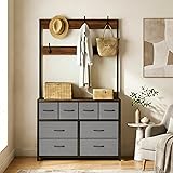 Modern & Functional: The 8-drawer coat rack combines modern design with practicality, featuring 6 hooks for coats, bags, and accessories. It fits perfectly in entryways, bedrooms, or offices, offering versatile storage options. Dimensions: The dimension of the dresser is 40”L x 11”D x 68.9”H; Dimension of the large drawer: 18.6” L x 8.1”H, dimension of the small drawer: 9.4”L 8.1” H. Sturdy & Durable: Crafted with a robust metal frame and reinforced fabric drawers, this bedroom dresser is built for stability and durability. The tear-resistant, breathable fabric keeps contents dust-free and well-ventilated, ideal as a general storage drawers. Space-Saving: Designed to fit tight spaces, this small dresser works as a closet organizer, bedroom dresser with drawers, or hallway storage unit. Its slim profile fits neatly beside beds or against walls—great for apartments, dorms, and shared rooms. Easy Assembly: Quick assembly with all tools and instructions included. The smooth surface make cleaning effortless. Enjoy a hassle-free storage solution that stays fresh and tidy for years.