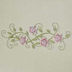WHIMSICAL FLORAL DESIGN: The metal, flower wall art sculpture blossoms with charm, captures the beauty of nature, and adds romance to any space HANDPAINTED DETAILS: Features scrolling vines, textured green leaves, and layered blossoms in soft light and deep pink tones CHARMING OPENWORK STYLE: Airy, cutout design enhances wall space with depth and dimension VERSATILE DISPLAY: May be hung horizontally or vertically to create flexible display options to suit your wall decor needs DIMENSIONS: M-bM-^@M-^S Measures 33"W x 1.5"D x 12"H, making it a striking focal point anywhere it is placed without overwhelming the room