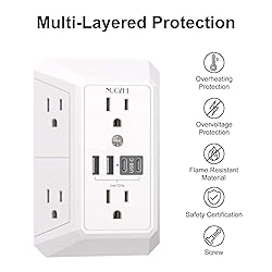【 Multi Plug Wall Outlet Extender】- Securing onto the wall design. Fit duplex outlet perfectly, just plug in to use. You get 6 AC outlet splitter (3 sides) with wide space in between; 4 USB charger ports; using the screw at the middle to secure it onto the wall for duplex outlet, so it is not pulled out when pulling the plugged in devices and loss power. Note: this works on duplex outlet only, other types of outlet like GFCI outlet cannot be secured onto the wall. 【Wide space outlets】- 6 AC outlets built-in 1680 Joules surge protector with 2.2 inches long space in between, larger than standard 1.5-inch socket. Larger spacing makes it easier to use for all kinds of equipment. 【 Smart Charge USB Ports 】- 4 USB Ports total 3 A, Each USB A port features 5V/2.4A Max output. Each USB C charging port features 5V/3A MAX. Built in smart technology, detecting charging devices and deliver optimal charging speed automatically, compatible with Kindle and most USB devices. NOTE: The UCB-C port is not Quick Charger 3.0, doesn't support any other devices which need 9~22V charging voltage. 【 Reliable Surge Protector Circuit 】- 2 level complementary Surge Protector Circuit which composed of TVS, MOV (metal oxide varistor), with minimum 1680J energy absorbing capacity, could protect your devices much more quickly and reliably than other brand's 1 level MOV(metal oxide varistor) Surge Protection Circuits. 【 Our After Sale Service 】- ETL Certified,Our friendly and reliable customer service will respond to you within 24 hours. You can purchase with confidence, with our 30-day return and 12-month Warranty.