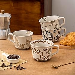 【Advanced Materials】Our ceramic coffee cups are made of high-quality clay, lead-free, ensuring they can be safely used in microwaves, ovens, dishwashers, and refrigerators, providing durability and convenience for your healthy daily life. 【Texture Design】These coffee mugs feature simple leaf patterns, each cup's design is unique, bringing a touch of natural atmosphere to your home while maintaining a modern and minimalist aesthetic, complementing any style of decoration. 【Multi functional】This latte mug is an ideal choice for enjoying coffee, tea, hot cocoa, milk, and more. It is not only suitable for quiet mornings at home, but also for work and gatherings with friends. It is the best choice for Christmas, birthdays, housewarming, and wedding gifts. 【Best Size】These cute tea cups have a capacity of 12oz, ensuring that your beverage maintains perfect temperature before the last sip. Thickened cup walls better maintain the temperature of the coffee, and large openings are easy to clean. 【Proper packaging】 These ceramic mug are properly packaged in boxes to ensure they can be delivered intact to your hands. If you have any questions, please feel free to contact us at any time.
