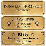 Personalized Engraved Name Plate 3" x 1" – Custom Metal Label for Trophy, Picture Frame, Plaque, Urn, Shadow Box – Gold – Adhesive Backing – Custom Text Laser Engraved