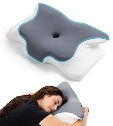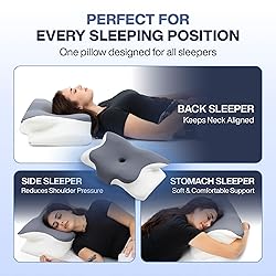 ERGONOMIC ARM HOLE DESIGN FOR SIDE SLEEPERS — Uniquely shaped pillow with an integrated arm hole relieves shoulder pressure and promotes proper spinal alignment, giving side sleepers deeper, more restorative rest without numbness or awkward positioning. ORTHOPEDIC BUTTERFLY SHAPE FOR NECK & CERVICAL SUPPORT — Innovative butterfly contour cradles your head and neck, supporting natural posture and reducing stiffness. Perfect for alleviating neck pain, improving alignment, and keeping airways open to help reduce snoring. PREMIUM HIGH-DENSITY MEMORY FOAM — Crafted from adaptive memory foam that contours precisely to your body while maintaining firm, consistent support. This ergonomic pillow retains its shape night after night—no flattening, sagging, or loss of structure over time. IMPROVES POSTURE & REDUCES PRESSURE POINTS — Designed specifically for side sleepers, this pillow helps align the neck and spine, easing shoulder tension, minimizing tossing and turning, and supporting healthy breathing for uninterrupted, comfortable sleep. BREATHABLE, WASHABLE COVER FOR EASY CARE — Soft, removable cover encourages airflow to keep you cool and fresh throughout the night. Fully machine washable for lasting cleanliness, ensuring your pillow remains hygienic and supportive use after use.