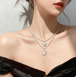 Enchanting Celestial Motifs: Features 2 layered chains with delicate moon and star pendants, each adorned with micro-pavé cubic zirconia stones that catch light like stardust, evoking a dreamy, whimsical vibe. Sliver Plated Luxury: These star moon layered necklaces are made of real 925 sterling silve, long-lasting finish that resists tarnishing; nickel-free and hypoallergenic for sensitive skin. Adjustable Layered Silhouette: Adjustable chain lengths (15"-17") create a staggered, collarbone-grazing look that flatters V-necks, crewnecks, and off-the-shoulder styles. Lightweight & Comfortable: Thin, fine-link chains (8.2 g per chain) feel weightless, ideal for all-day wear-whether stargazing on a date or adding magic to daily outfits. Romantic Gift Ready: These star moon layered necklacest is a heartfelt present for birthdays, anniversaries, or "just because" moments, symbolizing love as enduring as the stars Suitable for a variety of occasions:These necklaces are suitable for adult or teenager aged over 12 years old.These layered necklaces are trendy and beautiful, which makes you more attractive, suitable for life and work.