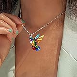 KOFISNI Colorful Hummingbird Necklace for Women Acrylic 2D Hummingbird Necklaces Hypoallergenic Cute Bird Necklaces for Women Bird Lovers