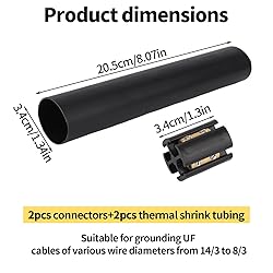 Package Content: You will receive 2 set of underground wire splice kit, including 2 underground wire splice connectors, 2 thermal shrink tubes, suitable for grounding UF cables of various wire diameters from 14/3 to 8/3. Premium Material: The electrical connector is designed with good-quality ABS and brass materials, ensuring durability even under the harshest working conditions. You can use it with confidence. Proper Size: Our underground cable connector measures about 3.4cm/1.3in, the thermal shrink tubing measures about 20.5x3.4cm/8.07x1.3in. The compact size makes the electrical connector easy to carry and use. Easy Installation: Our underground wire connector kit features compact and portable connectors, ensuring a tight connection every time. Peel off the insulation layer of the wire, insert the wire, and tighten the screws for quick and reliable repair. Good Sealing: Our underground wire connector kit provides shrink tubing for easy sealing, making it a versatile supplement to underground cables, buried cables, light bulbs, and cars.