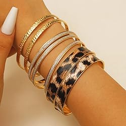 Chunky Leopard Bracelets Set: The Leopard print elements bring a wild, trendy vibe. Multiple stylish bracelets in one pack, including some eye- catching leopard print bangles and some gold toned bangles. Different styles bracelets will have different beauty, you can wear alone or together with other chains to form a sense of hierarchy. Size: Easy to slip on and off and fit most people's wrist, not too tight or too loose, providing you a comfortable wearing experience. Suitable Occasions: Suitable for various occasions. You can wear this leopard styles with anything. This bracelets can be worn alone for a delicate look or layered with other bracelets for a trendy style statement. Meaning Gifts: These bohemian chunky leopard stackeble bracelets can be a good gift for your wife, mom, daughter, sister or friend's on birthday, wedding, anniversary, graduation, Valentine's Day, Mother's Day, Thanksgiving, Christmas, etc. Service: If you have any questions, please contact us by email. We will reply and provide relevant services.