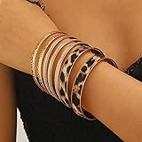 Caiyao Multilayer Leopard Print Stackable Statement Bracelets Set Exaggerate Chunky Gold Polished Leopard Wide Wristband Bangle Bracelets for Women Bohemian Indian Trendy Wedding Jewelry Gifts