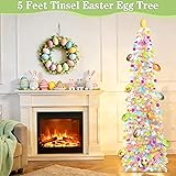 Timer - Easter Decorations, 5Ft Lighted Easter Tree with 50 LED Warm White Lights 12 Colorful Eggs Ornaments Battery Operated Easter Egg Tree Pop Up Tinsel Collapsible Tree for Home Porch Office Party