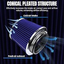 【Trustworthy Material】: This filter is made of premium non-woven fabric and metal, featuring a robust and durable construction that withstands high temperatures, resists deformation, and offers corrosion resistance. It is washable and reusable, helping to save costs and reduce waste. 【Practical Functions】: Our air filter intercepts dust and debris to prevent harmful airborne particles from entering the engine, reducing wear risks and maintaining clean intake air. We recommend cleaning the filter every 5,000 to 10,000 km. If operating in dusty conditions, more frequent checks may be necessary. 【Ingenious Design】: It features a conical shape and a pleated design, which helps increase the air intake contact area and air intake volume, providing higher airflow. This allows cold air to enter more easily, reducing the engine's intake load and improving engine efficiency. 【Package & Application】: You'll receive 1 air filter, 1 metal clamp, and 3 rubber adapter rings (76/89/102mm) for flexible compatibility with various intake sizes. Suitable for cars, trucks, motorcycles, and more, it's an ideal choice for air filter replacement and vehicle upgrades. 【Worry-Free Installation】: The tapered air filter comes with a clamp. The clamp-on design makes it easy to fix to the intake port. Simply select the correct size adapter ring, tighten the screw on the clamp, and ensure a secure fit. The entire process is simple even for beginners.