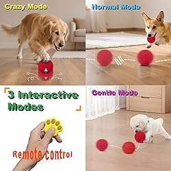Enhance Human-Pet Interaction: This interactive dog ball fulfills your daily playtime needs with your beloved canine companion. Beyond basic functions like fetch, chase, and chew, it can independently roll and bounce. This design strengthens your dog's obedience, deepens your emotional bond, and lets you share joyful moments together. Remote Control Functionality: The included remote control allows you to operate the smart interactive dog ball from a distance. Use it to turn the ball on/off, switch modes, and change the rolling direction. This flexibility lets you adjust based on your pet's mood and the situation, making interactions more immersive. 3 Smart Automatic Modes: An advanced light-sensing system detects whether the ball is fully closed. Choose from Bounce, Roll, or Mixed modes to provide your dog with distinctly different and engaging play experiences. Built-in motion sensor automatically pauses after 1 minute of activity and restarts when touched by your dog. Safe, Durable, and Chew-Resistant: Crafted from eco-friendly E-TPU material, combining environmental responsibility, safety assurance, rugged durability, and lightweight design—specifically engineered for dogs who love to chew. Withstands daily play and gnawing while protecting your dog's dental health. Newly upgraded mechanism: The upgraded dog ball features a Type-C charging port, fully charging in just 50 minutes for up to 4 hours of continuous use. With 7 days of standby time, you'll never worry about running out of power again. Multi-functional design: In silent interaction mode, the ball operates almost noiselessly. Its elastic shell balances outdoor adventures with indoor safety, while IP54 waterproofing allows for easy rinsing and cleaning after outdoor play.