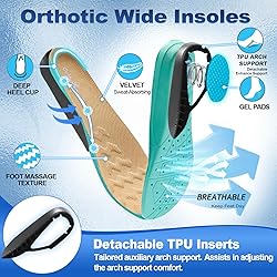 【Plantar Fasciitis Relief】OrthoComfoot specializes in arch support, plantar fasciitis insoles, and solutions for various foot conditions. These comfort insoles evenly distribute foot pressure and improve posture. They help alleviate pain and fatigue, providing relief for foot and heel discomfort. Experience healthy feet with OrthoComfoot! 【Wide Feet & GEL Cushioning】Orthotic insoles designed specifically for 3E-5E wide shoes. The GEL-cushioned heel absorbs shock effectively, reducing joint impact and making every step feel light and effortless, as if walking on clouds. 【Breathable Design】The breathable perforations and moisture-wicking materials enhance air circulation, reducing moisture buildup. These insoles keep your feet dry and cool all day. Comfort insoles also support better blood circulation, alleviating discomfort, and promoting overall foot health—ideal for individuals with diabetes or flat feet. 【Arch Support & Deep Heel】Ergonomically designed insoles provide arch support and cushioning across the entire footbed, evenly distributing pressure to reduce the risk of ulcers or pain from localized stress. These insoles ensure optimal protection and comfort for sensitive feet. 【Easy to Use and Replace】Users can easily remove their original insoles and replace them with OrthoComfoot insoles. The design requires no trimming and fits various wide shoe types, including work boots, casual shoes, and sneakers. Say goodbye to foot pain and experience the OrthoComfoot difference today!