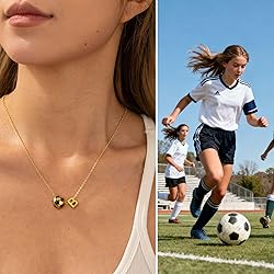 【 Initial Soccer Necklace 】 This necklace consists of an exquisite soccer pendant and a recipient's initial name charm. The gift with an exclusive name shows the importance and sincerity towards her. It comes with an inspirational card that encourages us to bravely overcome obstacles in life and helps us shine on the journey of life. Soccer lovers will be surprised by this necklace 【 Adjustable Size 】This necklace has an adjustable size,chain length is 17+2 inches extension chain , with a strong secure lobster clasp.Lightweight and comfortable,It can meet the wearing needs of different people 【 Excellent Material 】This necklace is made of a 14K gold chain and two copper pendants. No lead or nickel, making it suitable for sensitive skin. It goes well with any clothing and can be worn with confidence whether in sports mode or daily occasions 【 Soccer Gifts for Teens Gals 】 This cute and exquisite soccer necklace can be given as a gift to yourself, family or friends on birthdays, Thanksgiving, Christmas, Valentine's Day, graduation seasons, at the end of the season, or for daily wear. It is an ideal gift for soccer enthusiasts, team members, athletes, coaches, fans, and soccer moms 【 After Service 】 If you encounter any problems when purchasing our products, please feel free to let us know, and we will provide you with professional solutions within 24 hours