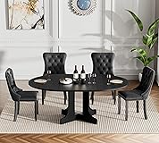 Retro Rustic Kitchen Dining Table Set: 7-Piece kitchen dining table set include 1 wood dining table, and 6 dining chairs, which makes it perfectly sized for a dinette, kitchen, or any dining area. With a modern design and elegant shape, whether you want to enjoy dinner with your family at the dining table or gather with friends, this dining table set will be a good choice. Extendable Round Dining Room Table: This wood farmhouse dining table can accommodate up to 6, and the tabletop can be expanded from 43.31 inches to 59.06 inches through the built-in butterfly extension function. If you do not use it, the extensions simply slot into the convenient extension holder of the dining table to save unnecessary space - this mechanism makes them essential for your home and can be used as a simple desk or as a large dining table. Dining Table and Chairs: This elegant wood dining table is made of MDF, durable wood types without natural defects thanks to great workmanship in the production phase. The backrest and cushion of this living room chair is made of soft and springy velevt, The backrest adopts an ergonomic design, which can support your back to ensure comfort without feeling back pains when sitting for a long time. Multifunctional Dining Room Table Set: This home dining table set is ideal for everyday dining and gatherings of family and friends, This long extendable dining table is not only as dining kitchen table, it can also be display table, large coffee table, computer desk table, etc. - This dining table will transform your average family dinner into a wonderful fine dining experience. Easy Assembly and Maintain: Multiple packages might not arrive at the same time. Installation of this dining table set is simple and fast by following the instructions, which can be finish in just 15-25 minutes. The smooth surface can be cleaned with a towel or cloth, so the daily maintenance needs less time and effort.