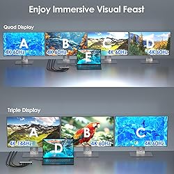 Laptop Docking Station(6-In-1) - Do you know what a professional-grade docking station is? This is it! It's equipped with 2 DP(DP 2.1), 2 HDMI(HDMI 2.1) port, 100w PD IN, 5G Ethernet. Whether it's project design, multi-screen office work, or 4K high refresh rate gaming, it can handle it all perfectly. Just professional, just cooool! 4K@144Hz Docking Station - HDMI2.0? DP1.4? NONONO. HDMI2.1? DP2.1?YesYesYes! For daily life and work, expanding to one/two 4K@144Hz or 4K@144Hz+2*4K@60Hz or four 4K@60Hz monitors can meet almost all needs. Design, office work, stock trading, gaming—one device can handle it all! This function for windows only. Docking Station With 5G Ethernet - Gigabit RJ45? It's toooo slow. Our docking station can bring u to 5G world now! It support for 2500/1000/100/10 Mbps speeds, it boasts a 5000Mbps speed! Just fast, crazy fast, cool! Pls note,host USB3.2 required. Docking Station With 100w Power Delivery - Say goodbye to low battery! Docking station with 100W power delivery, 90W for laptop charging. Our products do not come with a charger, please use a 20V/5A/100W charger. Please confirm your computer charging power, it will not charge if it is higher than 90W. Note - Not compatible with any MAC OS computer. Please make sure that the type-C port of your host supports charging and video output. Please make sure that your devices supports DP2.0&DSC, if not, the resolution will not be as high as mentioned above. Host USB3.2 required, and a strong, powerful GPU ensure stable video transmission. Only the DisplayPort supports up to 4K@144Hz, while the HDMI port only supports up to 4K@120Hz.