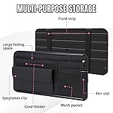 【Multi-Functional Storage】: It features a multi-pocket design, combining the function of glasses case, document holder, card holder, and pen slot, easily organizing all your essentials. It keeps your phone, change money, receipts, and more neatly stored, preventing clutter and maintaining a tidy, orderly car interior. 【Convenient & Secure】: Mounted on the overhead sun visor, it is within easy reach for easy access. Plus, the zipper and nylon sticker closure effectively secure items inside, preventing them from falling out or getting damaged during driving, keeping them intact and avoiding distractions that could affect driving safety. 【Premium Material】: Made of high-quality leather, it features a smooth surface and a soft, comfortable feel. It is wear-resistant, waterproof, and easy to clean, ensuring long-lasting use. Fine craftsmanship and sturdy stitching enhance its overall texture, combining durability with aesthetics. 【Easy Installation】: Simply loop the straps on the back of the organizer around the sun visor and secure the nylon stickers. The strap length can be adjusted to fit different visor sizes, bringing you more convenience. Its installation won't interfere with the normal use of the sun visor or obstruct your view. 【Wide Application】: Our organizer measures 12.2×6.4 inches, with a rational size compatible with most vehicles' sun visors. It can well meet storage needs while looking simple and beautiful. It is not only for self-use, but also ideal as a thoughtful and practical gift for other car owners.