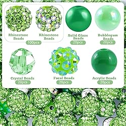 - 300 PCS Wurosi Rhinestone Beads for Jewelry Making, 200 PCS 10mm Crystal Clay Beads, 50 PCS 6mm Pearl Bead, 50 Pcs 8mm Spacer Bead, for DIY Bracelet Necklace Earring Crafting(Green) Rhinestone Beads Specification: The Wurosi crystal beads set contains 100 10mm rhinestone beads, 20 10mm bayberry ball beads, 20 10mm bubble beads, 20 10mm acrylic beads, 20 10mm transparent beads, 20 10mm round beads, 50 6mm pearls beads, 50 8mm spacer beads, a total of 300 diamonds beads for bracelets, sufficient quantity to meet your daily needs, 11 colors to choose from, you can freely match Note: Because the diamond beads are made by machine, there may be some holes that are not threaded properly. You only need to thread them with wire or a sewing needle. It will not affect normal use. Color: Pink, green, red, white, black, grey, yellow, orange, purple, rose red, blue Beads for Jewelry Making Set Contains: 200pcs of 10 mm rhinestone beads (6-7 Style Mix) 50pcs of 8 mm spacer beads (3 Colors Mix) 50pcs of 6 mm pearl beads Widely Used Bling beads can be widely used in bracelets, earrings, necklaces, pendants, pens, holiday decorations,Christmas decorations and so on Note: 1.Please allow a little error on the size due to manual measurement. 2.The color might exist slightly difference due to different displays.