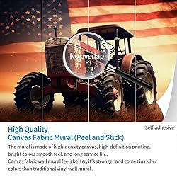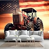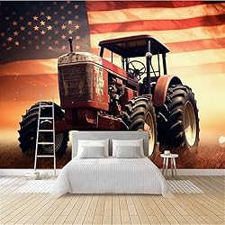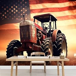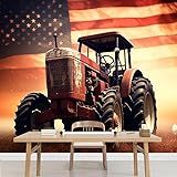 Tractor with American Flag Peel and Stick Wallpaper 124" W x 85" H Agricultural Machinery Large Wall Murals for Living Room Bathroom (Removable)