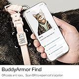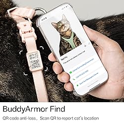 【BuddyArmor Patent Anti-Escape Design】Our original designed cat harness with patented structure features escape-proof and anti-choking mechanisms. Keeping your cat secure and comfortable. 【Figure 8 One-piece Adjustable】Figure 8 cat harness fits for all body types. One-piece sliding adjustment easily tailors to your cat’s shape for a snug, gap-free fit. NOTE: Please measure your cat’s chest girth before purchasing to ensure the right size. 【BuddyArmor Find – QR Code Anti-Lost System】Integrated BuddyArmor Find QR tag which is made of U.S. food-grade silicone lets anyone scan to access your pet’s information instantly and upload location, helps reunite lost pets with their owners quickly. NOTE: As the QR code tag embedded in the webbing is a customized product, if you need to return the product, please log in to the BuddyArmor Find website to delete and cancel the information entered into the QR code before returning the product. Thank you for your understanding and cooperation. 【Easy To Put On Harness】Y-K-K quick-release buckle for easy on/off. You can adjust the neck and chest size simply by adjusting the snap, and the fixed round stopper effectively prevents choking. 【Durable Fabric and Hardware】Our adjustable harness is made of high quality nylon webbing and sturdy alloy hardware, scratch-resistant and durable, resistant to pilling.