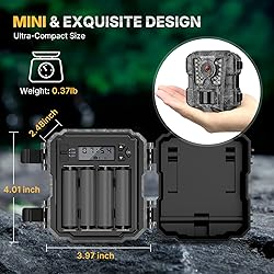 - The hunting trail camera adopts a mini design, which is smaller than the palm of the hand, making it easy to conceal. The mini tracking camera has been fully optimized for performance. It only needs 4 batteries to reach the performance of the old product with 8 batteries. About the trail camera Pre-use instructions:1. Be sure to switch the camera's power OFF before inserting /exiting the SD card and loading/unloading the batteries.2. Formatting the SD card before using it for the first time is recommended. (Put the switch to "AIM " --Press OK key to skip to "FOrn_" page and use UP/DOWN to change the “N” after “FOrn_”to “Y”-- Press OK to format the SD card . )About how to use the trail camera:1. Install 4pcs AA batteries (NOT INCLUDED).2. Install SD card (CLASS 6 or higher class Up to 32GB max, NOT INCLUDED). 3. Put the switch to "AIM", then formatting the SD card and setting the trail camera(Time/ Date, Interval Time etc).4. Put the switch to the ''ON'' position, The notion indicator LED will blink red for about 10 seconds. Then shut down; it will enter the PIR detection state. the trail camera starts working. Warm Tips: 1. Please format the memory card in the camera when using it for the first time and do not insert or take out the SD card when the camera is ON.2. SD card and batteries are NOT included in the package.3. Please refer to QA or User Manual if you have any questions.4. Please remember that due to the lighting effects, the monitor's brightness / contrast settings / etc's, there will be some slight differences in the color of the pictures and the actual items.5. If the use camera and reading of the video is not smooth, please contact us, we will definitely give you a most satisfactory solution