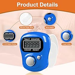 - Count Confidently: No Accidental Resets! Meet the ultimate electronic finger counter set engineered for reliability. With our smart anti-mishap button layout and comfortable open-loop design, you’ll never lose count again. Why Professionals Choose Our Counters: ✔️ Versatile Digital Tool: This digital counter doubles as a golf stroke counter, fish counter clicker, and pitch counter clicker. The click counter handheld design also excels as a tasbeeh counter, tasbih counter, and dhikr counter for prayer tracking. ✔️ Crafting & Logistics Master: Perfect stitch counters for crocheting (clicker crochet compatible), stitch counter, and row counter. Works equally well as a people counter or inventory tracker. ✔️ Crystal-Clear 5-Digit LCD: Bright display shows counts up to 99,999. ✔️ All-in-One Hand Counter Clicker: Unlike bulky mechanical counter alternatives, our slim clicker counter (contador-style) features auto shut-off and includes batteries. ✔️ Ergonomic Finger Clicker: The open-loop finger counter clicker (dhikr ring** alternative) slides on comfortably. Weighs <0.2 oz! Real-World Uses: Sports: Golf strokes Fishing Baseball Crafting: Crochet/knitting rows & stitches Events: Guest counts People counting Fitness: Reps Laps Circuits Prayer: Tasbeeh/Tasbih/Dhikr counting