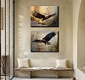2Pcs Bible verses eagle canvas wall art inspirational Bible verses Christian religious poster print home decor painting suitable for living room church prayer room office 12x16 in ready to hang