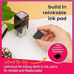 CUSTOMIZATION OPTIONS: Create your own personalized self-inking stamp with your logo, image, or combination of image and text in a square format VERSATILE DESIGN: Perfect for business logos, return address labels, signature stamps, or any other custom marking needs SELF-INKING MECHANISM: Built-in ink pad allows for quick, consistent impressions without the need for a separate ink pad IMPRESSION SIZE: Square design provides ample space for detailed logos and text while maintaining crisp, clear stamping results LONG-LASTING USE: Durable self-inking mechanism delivers thousands of clear impressions before requiring re-inking